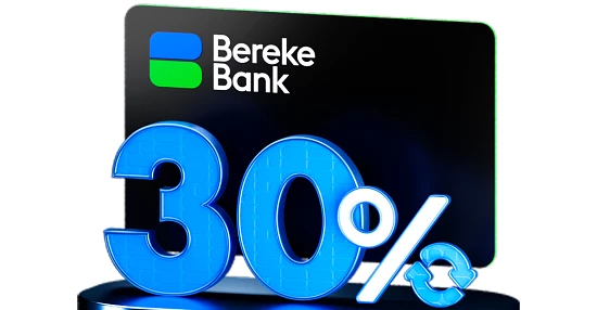 Пластиковая моновалютная премиум-карта Bereke Premium (MasterCard World Elite) в USD или EUR на 5 лет. 3% кешбэк на все покупки, проходы в бизнес-залы LoungeKey, консьерж-сервис. Обслуживание карты беcплатное.