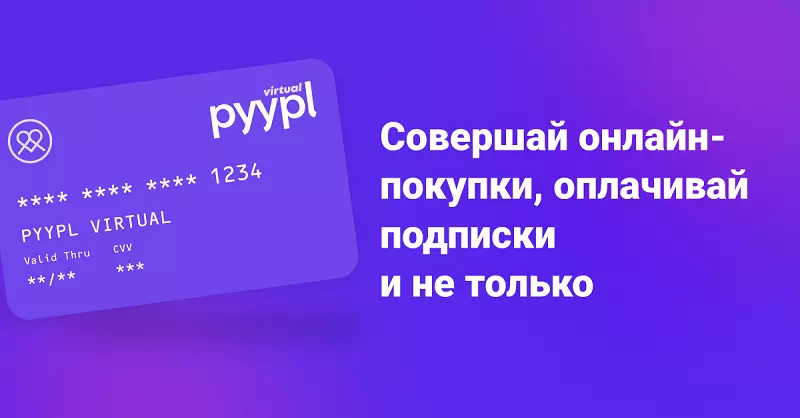 Pyypl (пипл) — это удобные платёжные карты, быстрое пополнение из России, очень удобное и простое приложение на русском языке, онлайн-поддержка на русском языке, виртуальные и пластиковые карты Visa.