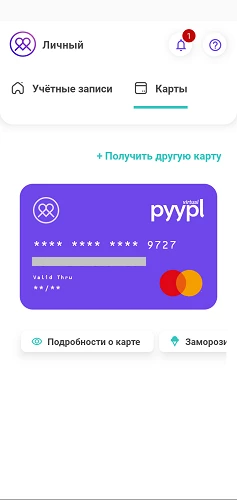 Открыть карту Pyypl — виртуальная и физическая (пластиковая)